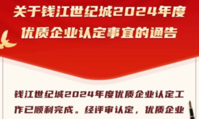 杭州恒領科技有限公司憑借卓越的創新實力與穩健的發展表現,經嚴格評審,成功入選錢江世紀城 2024 年度優質企業 。 此次認定,是錢江世紀城對我司在技術突破、產業貢獻等方面的高度認可。未來,我們將繼續秉持創新驅動理念,深耕核心業務,以更成熟的姿態助力行業發展,不負這份榮譽!